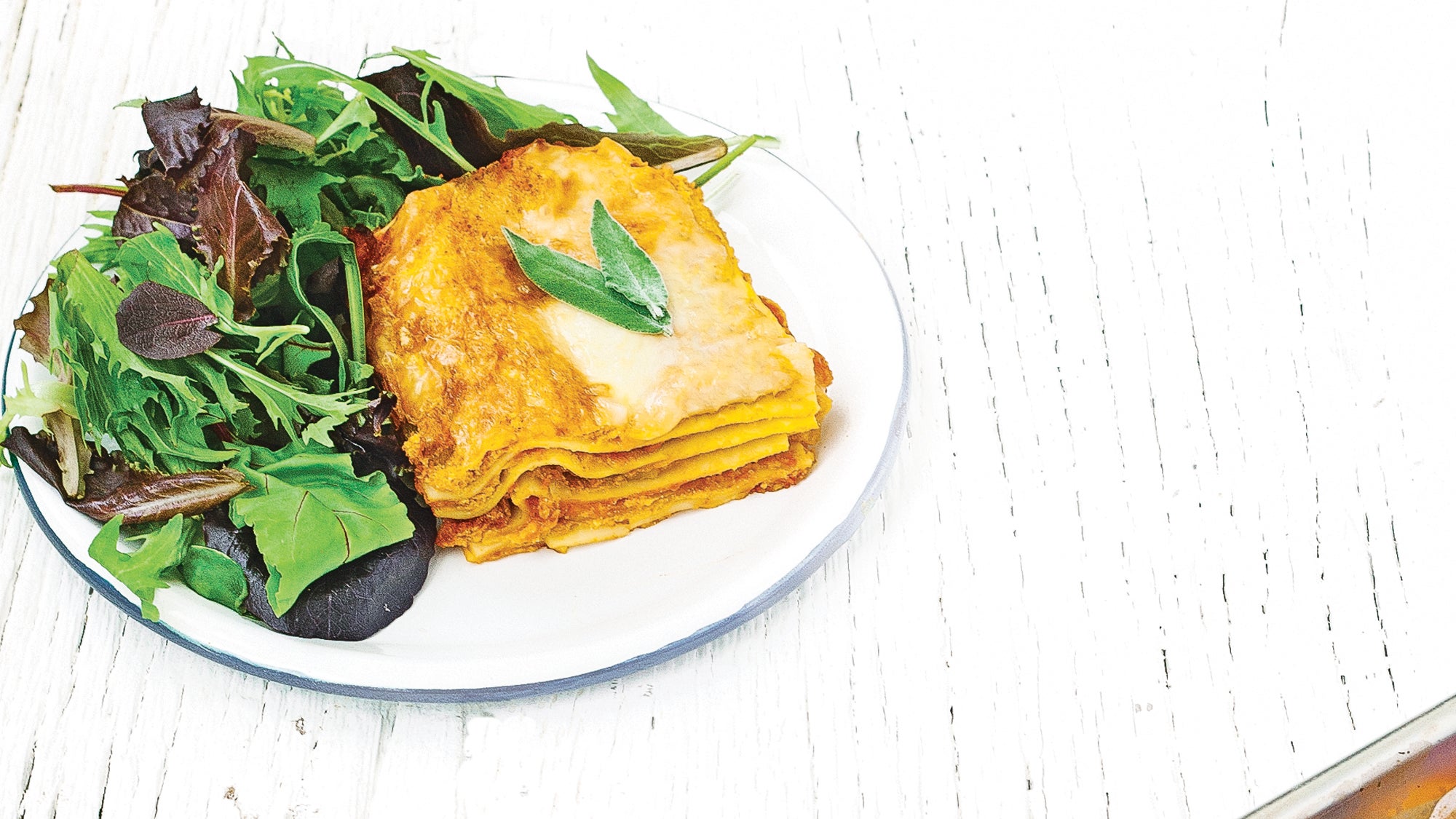 #Butternut | Butternut squash layered with our own marinara sauce provides a creamy, sweet base for this protein-packed vegetarian butternut squash lasagna.