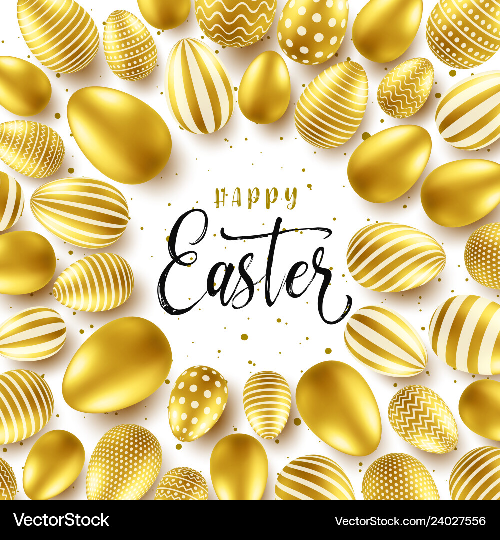 Easter background with realistic golden eggs vector image on VectorStock